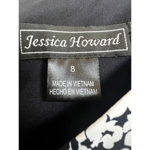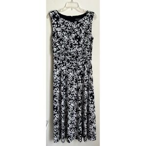 Keywords: Jessica Howard dress, black floral dress, midi dress, sleeveless dress, women's dress, size 8 dress, party dress, career dress, floral midi dress, black and white dress, aline dress, work dress