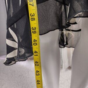 Jessica Howard Black Ivory Bamboo Print Ruffle Hem Midi Dress Size 6 Perfect for cocktail hour, weddings, date nights, or evening events. Seasonally versatile — ideal for spring through fall. Condition: Excellent pre-owned condition. No holes, stains, or tears. See photos for measurements and detail. Features: Size: 6 Color: Black with ivory bamboo print Neckline: Round Sleeves: Elbow-length split flutter sleeves Length: Midi (approx. 42" from shoulder to hem) Style: Pull-on sheath silhouette with ruffled hemline Fabric: 100% Polyester (Lined) — lightweight chiffon-style woven Care: Dry clean only Closure: Pullover with no zipper
