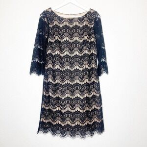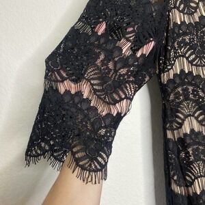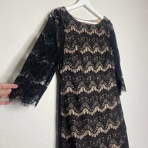 Jessica Howard Black Lace Nude Lining 3/4 Sleeve Dress 8