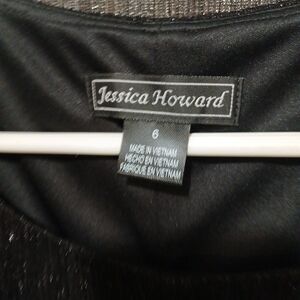 Jessica Howard Black Metallic Dress 6 Black And Silver Herringbone Coverup New