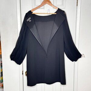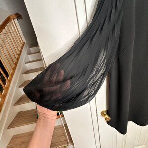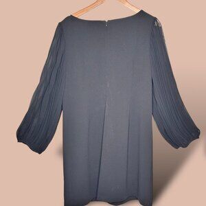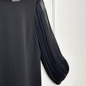 Jessica Howard Black Sheath Dress Size 14 Pleated Sheer Sleeves Back Zip