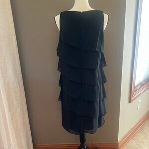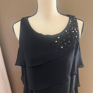 Jessica Howard Black Sleeveless Tiered Cocktail Midi Dress, Beaded, Size 14