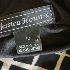 Jessica Howard Black & White Abstract Print Stretch Pullover Dress, Size 12