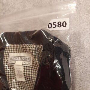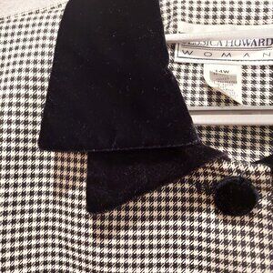 Jessica Howard Blazer Womens 14W black white plaid velvet collar buttons career
