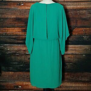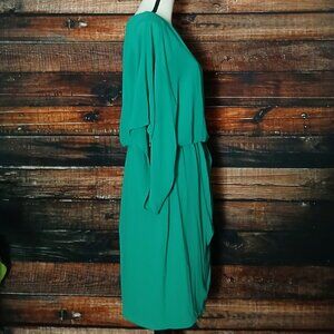 Jessica Howard Blouson Dress Size 10 Green Faux Wrap Kimono Sleeve Tie Waist