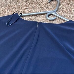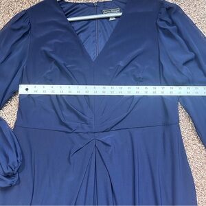 Jessica Howard Blue A-Line Dress with V-Neck and Bishop Sleeves