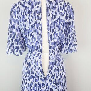 Jessica Howard Blue Leopard Fit & Flare V Neck Midi Dress Size 10
