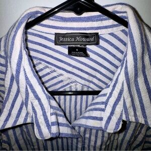 Jessica Howard Blue/White Striped Button Up Tunic Dress