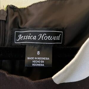 Jessica Howard Brown Polka Dot Dress with Green Sash