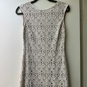 Jessica Howard Cocktail dress Beige lace with taupe under skirt.