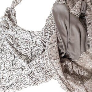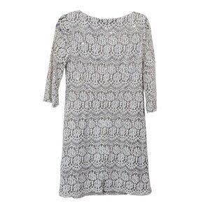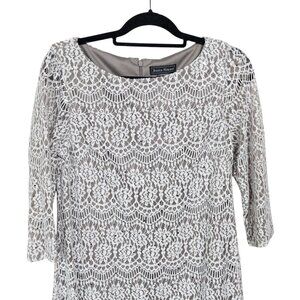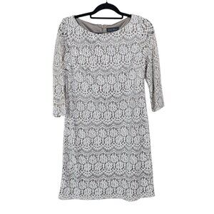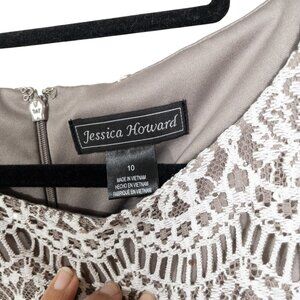 Jessica Howard Cream Tan Lace Sequin Dress Boatneck Quarter Length Sleeve SZ 10