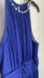 Elegant dark royal blue maxi dress. Features a beaded neckline. Sleeveless design with a flowing skirt.