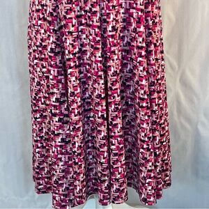 Jessica Howard Dress Pink & Black Geometric Jersey Fit & Flare Cap Sleeves XL