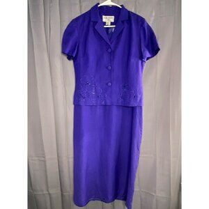Jessica Howard Dress Set Womens 8P Blue 2 Pc Jacket Maxi Sheath Linen Blend