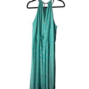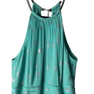 Jessica Howard Dress Size 16 Green Halter Keyhole A-Line Silver Embellishments