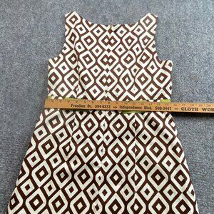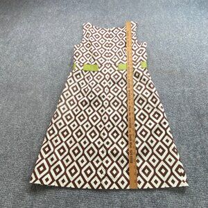 Jessica Howard Dress Womens 12P Sleeveless Brown Geometric Green Ribbon Belt