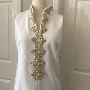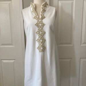 Jessica Howard Dress Women’s Waffle Ivory W/Champagne Gold Trim Size 10