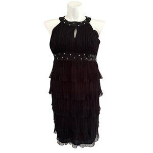 Jessica Howard Evenings NWT Black Tiered Keyhole Beaded Dress, Women's Size 14