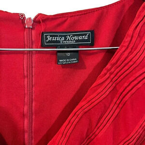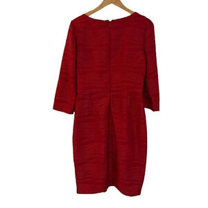 Jessica Howard Evenings Red Dress 12 Textured Pleated Wavy Stripes 3/4 Sleeves