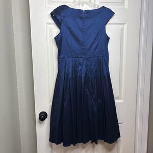 lea howard evening dress, navy cocktail dress, satin pleated dress, formal gown, wedding guest dress, mother of the bride dress, classic blue dress