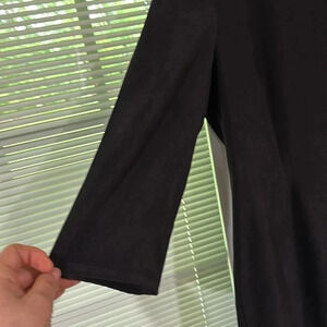 Jessica Howard, faux suede, scoop neck, short sleeve, diagonal seams, figure flattering, career wear, minimalist, layering