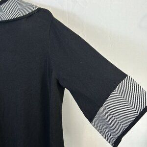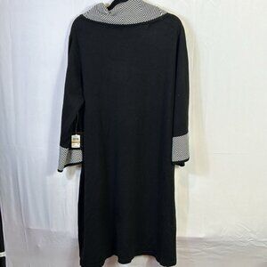 Jessica Howard size 3X black midi dress with flared sleeves. White striped design around neckline and the bottom of the cuffs