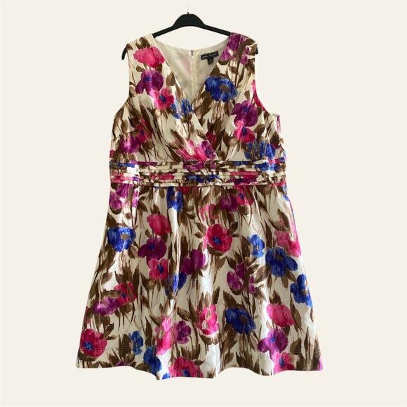 Jessica Howard Floral Tea Midi Dress 24W Pockets Empire Waist Zip V Neck