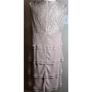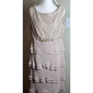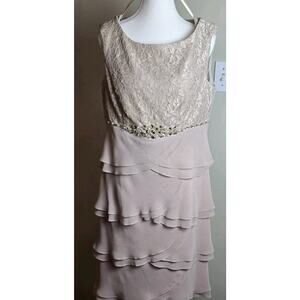 Jessica Howard Formal Cocktail Dress Beige Lace Ruffle Tiered Size 12 Wedding