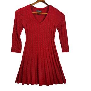 Jessica Howard JH Women's Size M Medium Cable Knit Sweater Dress RED