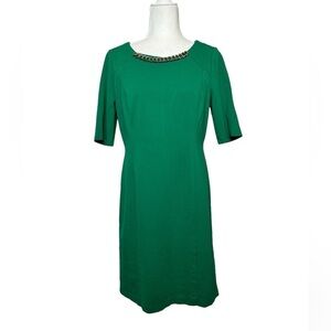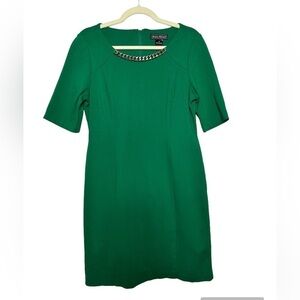 Jessica Howard Kelly Green A-Line MIDI Dress with Chain Embellishment Size 12