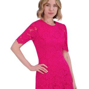 Jessica Howard Lace Short-Sleeve A-Line Dress Fuchsia Size 12