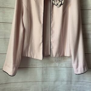 Jessica Howard Light Pink Blazer with Matching Brooch Open Front Retro Size 14