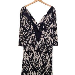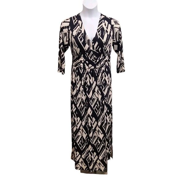 Jessica Howard Maxi Dress Womens 14 Geometric Print V Neck Side Slits