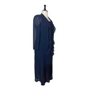 Jessica Howard Midi Jacket Dress Ruffle Front Chiffon Navy Blue Women’s Size 14W