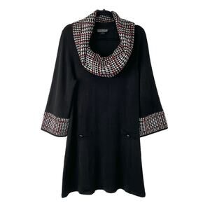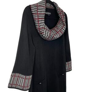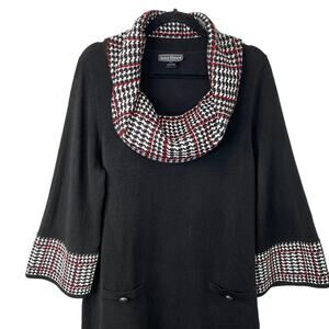 Jessica Howard NWOT Houndstooth Cowl Neck Sweater Dress Black Size Large
