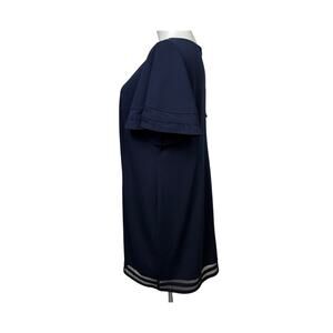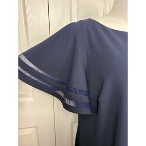 Jessica Howard Navy Blue Shift Dress PLus Size 18W Bell Short Sleeve Sheer Hem