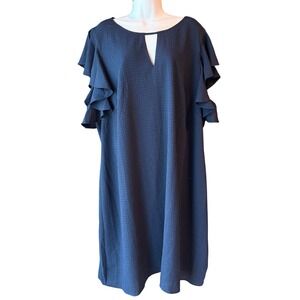 Jessica Howard Navy Dress Ruffle Sleeve Keyhole Plus Size Career 24W NEW