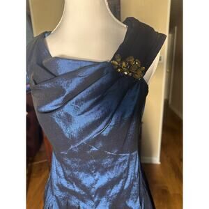Jessica Howard Navy Embellished Gold Rhinestone Shoulder Semi Formal Dress