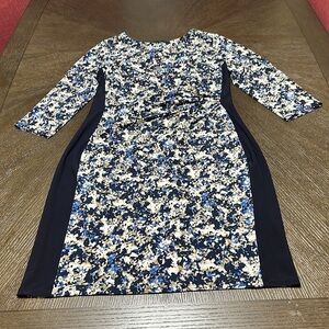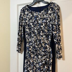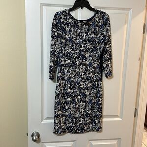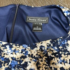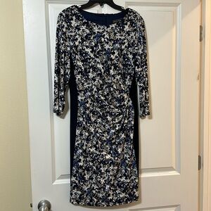Jessica Howard Navy Floral Knit Flattering Midi Dress, Women’s Size 12