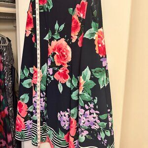Have loved this dress so much, got it new off of Armoire and it doesn't fit me anymore! Stunning navy blue dress with a beautiful floral pattern. The sleeveless design and boat neck create a sophisticated look, while the pleated fit and flare adds a touch of elegance.