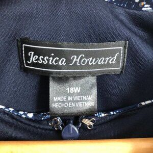 This beautiful maxi length dress is by Jessica Howard. It is navy blue and white on the jacket and chest with a solid navy blue lined skirt. The dress is sleeveless with a zip up back closure. The jacket is 3/4 length sleeves with an open front and padded shoulders. This is perfect to wear as a mother of the bride or for any formal occasion. It is in excellent pre-owned condition with no holes or rips. Some markings to jacket pit. Bundle with other items in my closet to get the most out of shipping!
