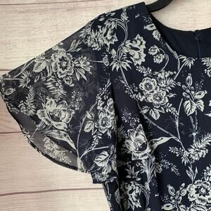Jessica Howard Navy and Cream Floral Tiered Dress Flutter Sleeves Tie Belt Sz 10