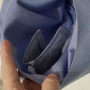 Very good pre-owned condition. See pictures for reference - the kick split in the back has increased in size approximately an inch. Also, there is a spot at the arm as shown in the pictures. Measurements taken while laying flat & are approximate.