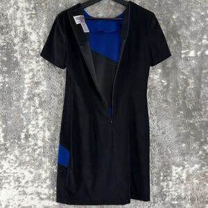 Jessica Howard Petite Size 6 Colorblock Mini Shift Dress Black Blue Short Sleeve