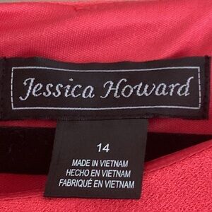 Used Good Condition. Jessica Howard Pink Orange Ruffle Sleeves Mini Dress size 14. Back Zipper. Lined. Slight Stretch.