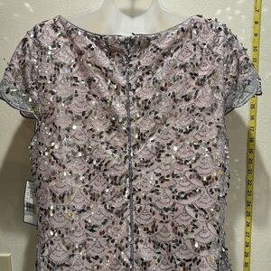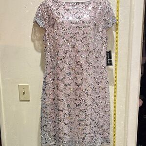 Sparkle in this stunning pink mini dress. Features intricate sequin detailing. Ideal for special events.