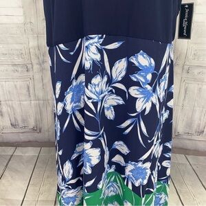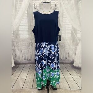 Jessica Howard Plus Size Green Blue Crew Neck Sleeveless Floral High-Low Dress