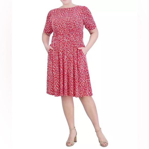 Jessica Howard Plus Size Printed Ruched-Sleeve Dress Women’s Sz 18W NWT
