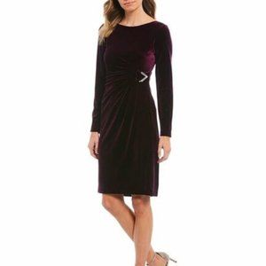 Elegant long sleeve dress. Rich purple color. Stylish side detail. Perfect for evening wear.