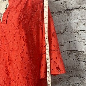 Jessica Howard Red/Orange Lace Shift Dress Women’s 14W Elegant Orange lace dress with 3/4 sleeves. Perfect for any occasion.